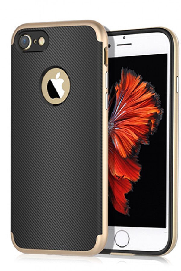 FitCase iPhone 7-8 2in1 Carbon Desen Arka Kapak Gold
