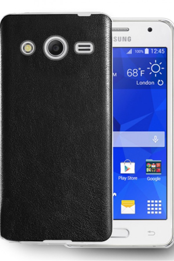 FitCase Samsung Core 2 G355 (G355) Kılıf Deri Dokulu Arka Kapak Siyah