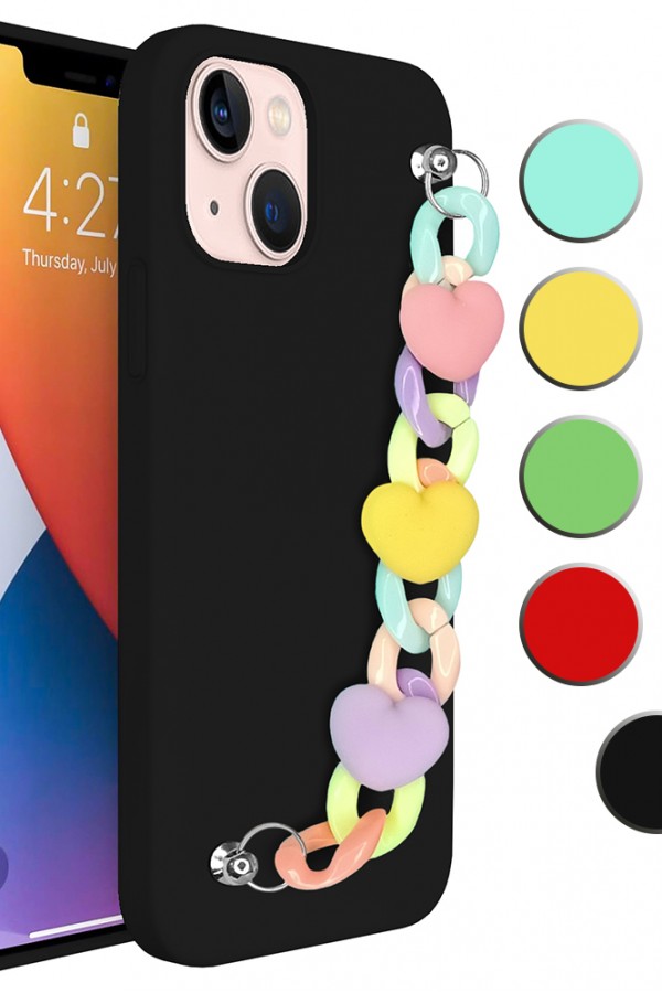 iPhone 13 Kılıf Renkli Zincir Aksesuarlı Silikon Kapak