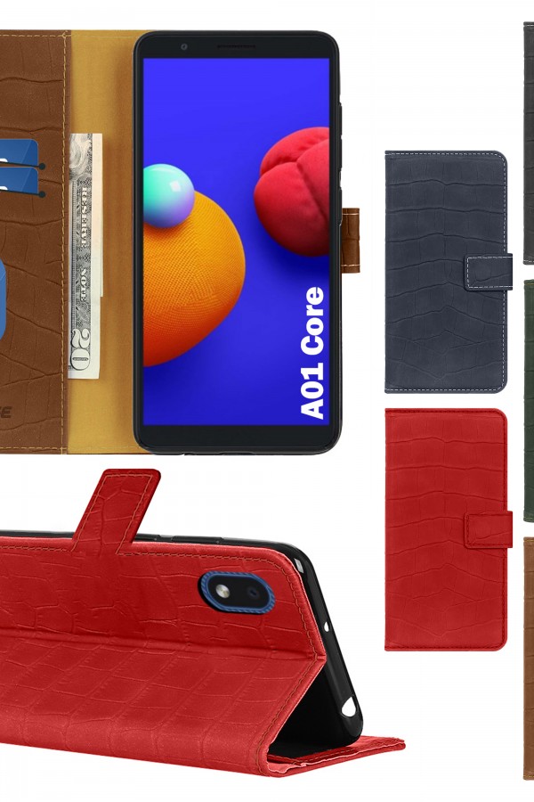 Samsung Galaxy A01 Core (A013) Kılıf Kroko Desen Kapaklı Cüzdanlı
