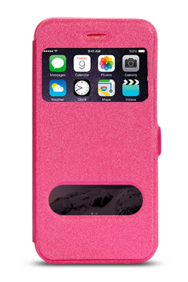 iPhone 6 Plus 5,5 inç Çift Pencereli Yan Kapaklı Kılıf Pembe