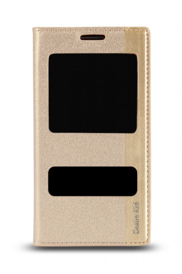 HTC Desire 826 Gizli Mıknatıslı Pencereli Magnum Kılıf Gold