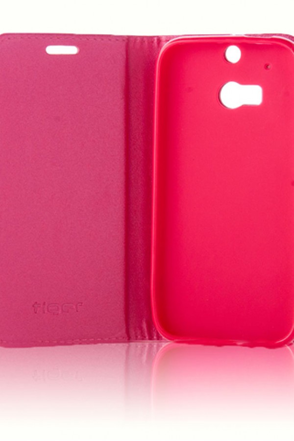 HTC One M8 Dikişli ve Gizli Mıknatıslı Tiger Kılıf Pembe