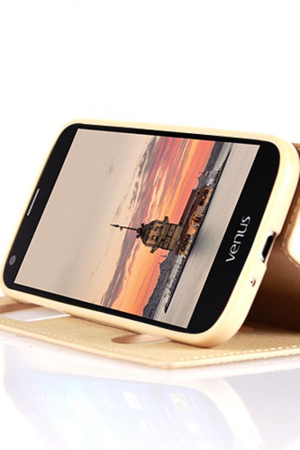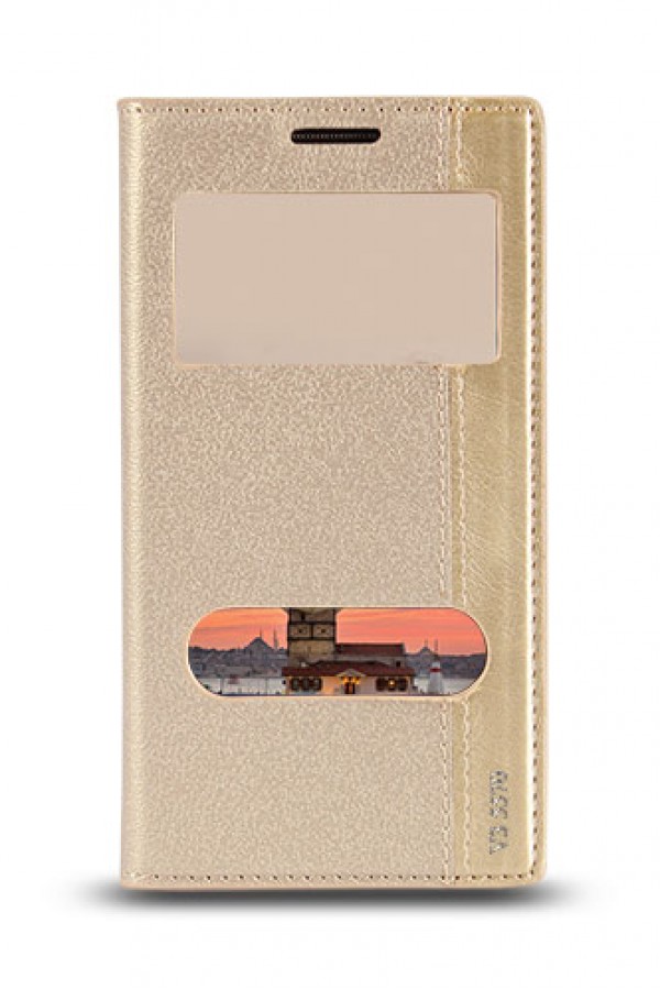 Vestel Venus V3 5570 - Gizli Mıknatıslı Pencereli Magnum Kılıf Gold