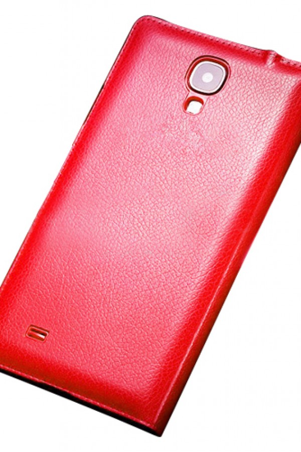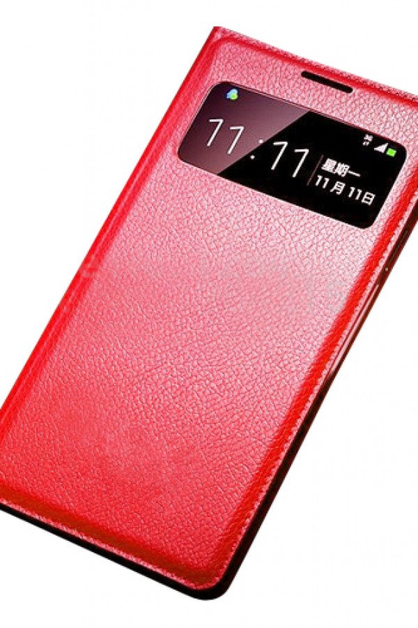 Samsung I9500 Galaxy S4 S View Dikişli Deri Pencereli Kılıf Kırmızı