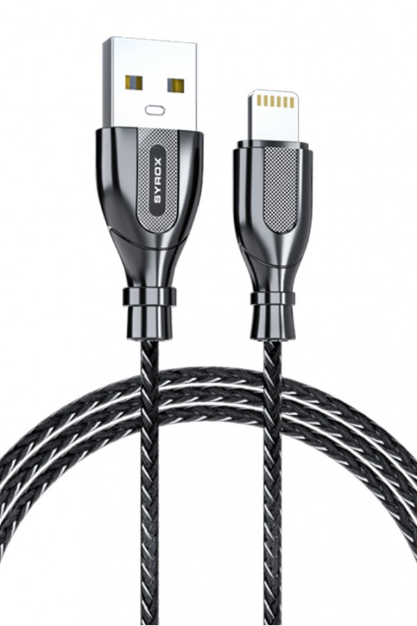 Syrox C121L Ultron Metal Lightning Örgü Data/Şarj Kablosu 2.0A 1mt Siyah